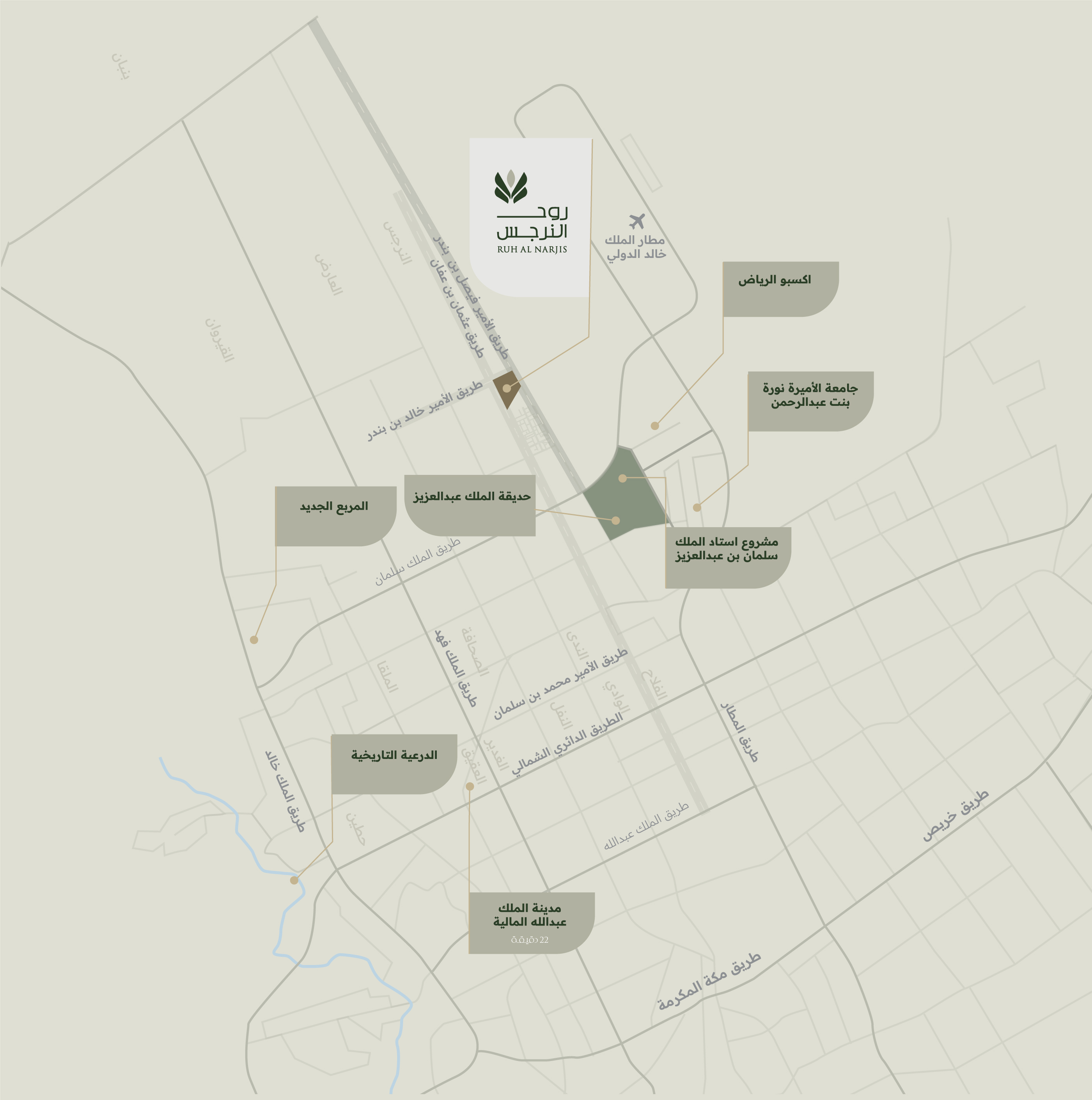 في أحد أحدث أحياء الرياض وأكثرها رقيًا ، يقع مشروع روح النرجس في حي النرجس شمال الرياض.